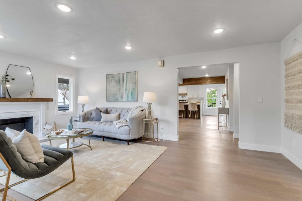 Welcome home! This meticulously renovated and fully permitted beauty boasts 4 bedrooms and 3 bathrooms, making it the perfect turn key place to call home. Upon entering, you’ll be greeted with an open concept space that’s perfect for entertaining. Living area features tons of natural light with mountain views and cozy fireplace. The stunning kitchen displays a custom designed 10 ft Quartz waterfall island, Brevenna porcelain hood vent and backsplash, pot filler, new high end LG stainless steel appliances (gas range w/ air fryer oven capability), and thoughtful extra storage in wrapped shelving 1/2 wall. The primary bedroom is a retreat, complete with an ensuite bathroom walk-in shower, double vanity, and walk in closet w/ 2nd washer/dryer hookup for convenience. Three additional spacious bedrooms, one with a sweet playroom with built in ladder. Newer roof (2020). Electric, plumbing, HVAC, water heater, engineered hardwood flooring, paint, ALL NEW with structural engineering, plans, and design board included. The backyard is secluded and perfect for hosting outdoor gatherings or simply enjoying a peaceful evening outside under the Wisteria shaded pergola. This spacious bungalow is situated in a prime location, with easy access to all the amenities you need, including fantastic schools, parks, shopping centers, and more. This home has been lovingly cared for by one family for 73 years prior. Don’t miss out on the opportunity to make this beautiful home your own!