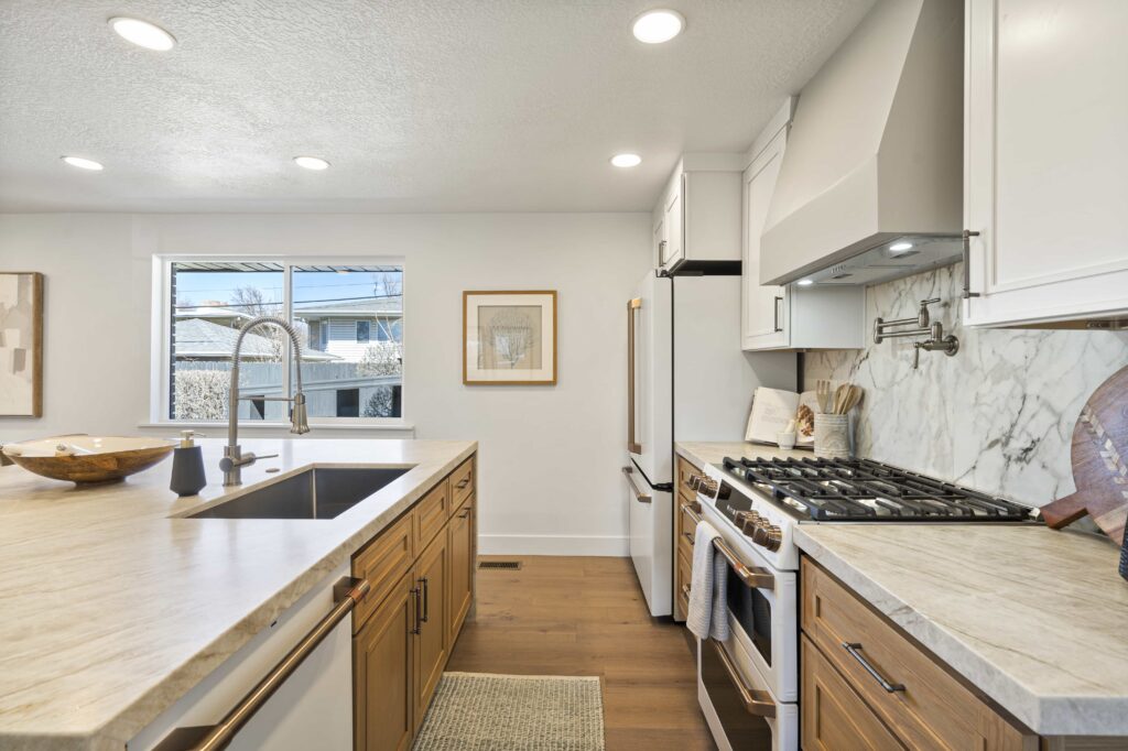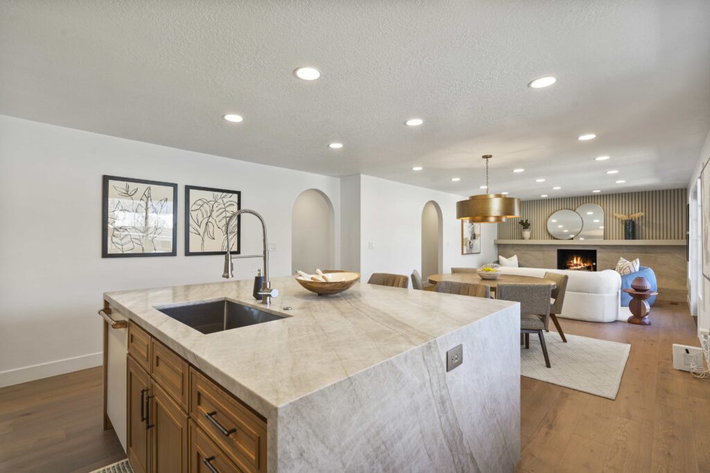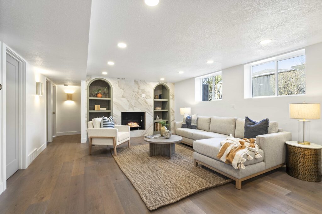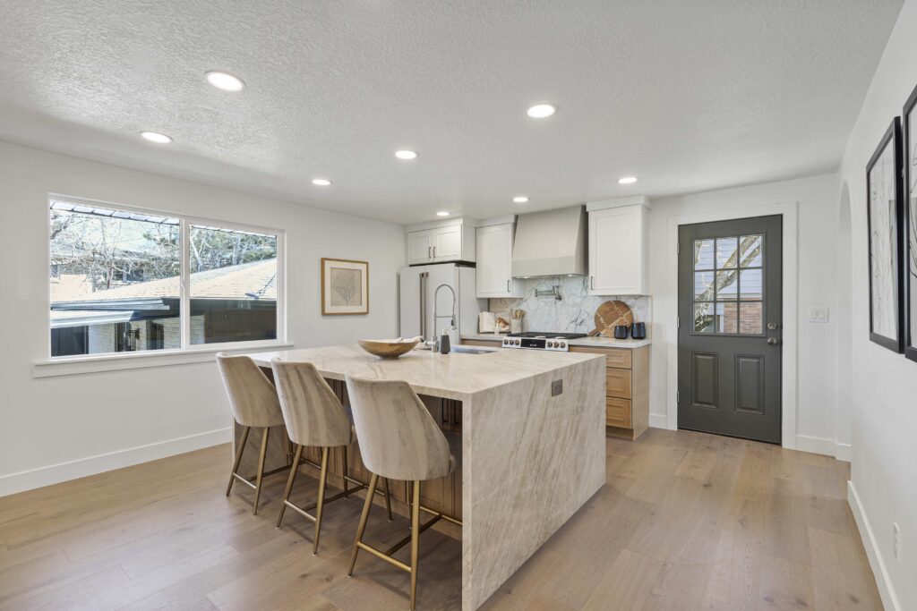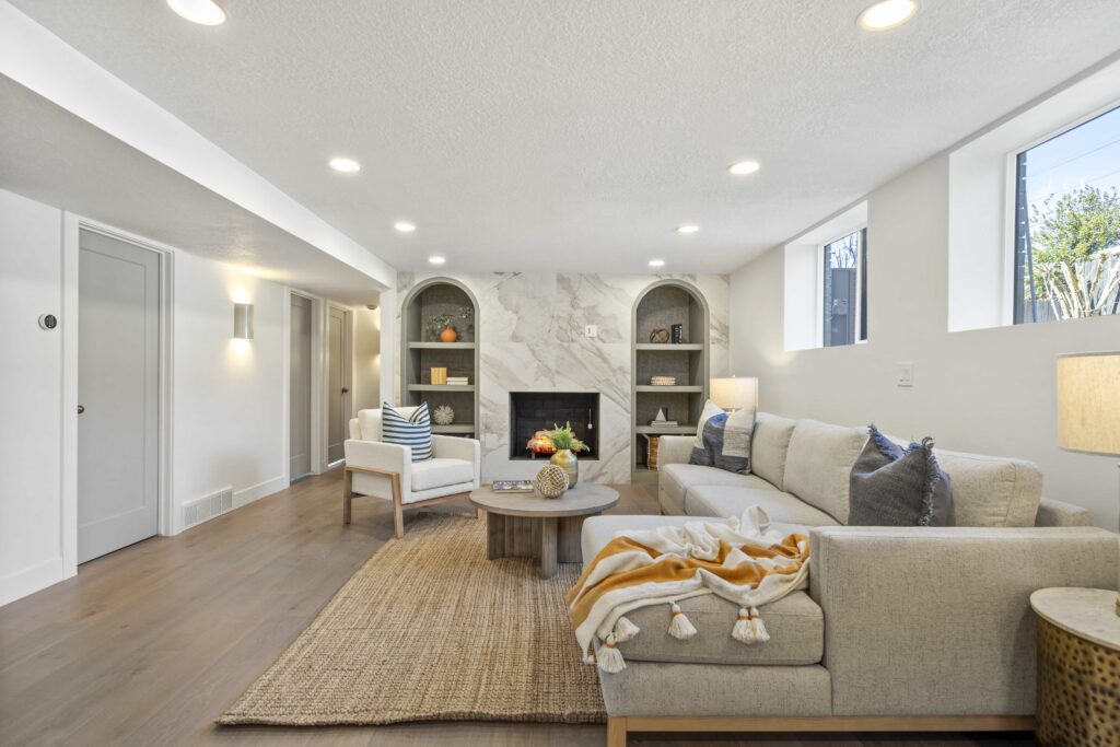 Welcome to your Ever Home in the heart of Salt Lake City’s sought-after 15th & 15th Neighborhood! 1961 Logan Ave, a 5-bed, 3-bath (possible 4th) home spanning 3,220 sq ft, is undergoing a stunning, fully permitted renovation by Ever Home & Co. This is the home, the remodel, and the area you have been waiting for. The main level is bright and open with all new windows, hardwood floors, and a stylish kitchen that features gorgeous Leathered Taj Mahal countertops, a waterfall island, 2-tone cabinets (White Oak & Off White), and new Caf appliances from GE’s luxury line. Adjacent to the kitchen is your Butler’s Pantry with plenty of extra storage, additional dishwasher, and gas/power run to add a double oven for your convenience should you desire. Open concept kitchen, spacious dining, and living area are topped off with a beautiful Taj Mahal fireplace with a customized wood slat accent wall. Living area also opens through French doors to a new deck to enjoy the fully landscaped private backyard. Main level primary complete with ambient pendant lighting, custom wood slat headboard wall, walk in closet to include 2nd washer/dryer hookups. The Primary Ensuite is a retreat with an oversized dual waterfall shower enclosed in European glass and 8′ double vanity wall with a built-in makeup vanity.The main level also includes an additional bedroom and office. The basement offers ample living space, plumbed for a kitchen or wet bar (optional), with a floor to ceiling tiled gas fireplace, custom arched built-ins and 3 large bedrooms. The largest bedroom has plans for an optional ensuite bath that will be plumbed and ready to finish. Also optional is the walkout basement to the backyard. With separate HVAC systems between the main and basement levels, a basement ADU (Additional Dwelling Unit) is possible to rent for additional income. Rentometer estimates the rent to be around $2900/month. The additional requirements for ADU capability are being put in place during renovation should you choose to make it official. Every detail of every square foot of this home has been meticulously thought through for you. Other fun facts: 2-car garage, newer roof, new electrical, new plumbing, new HVAC, smart thermostats, new windows throughout. *Images are virtual renderings and may differ from actual products; refer to design board and floor plans for accuracy, or give us a call for the details!Start the New Year creating memories in your new Ever Home.